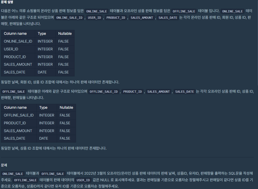 문제 : 오프라인/온라인 판매 데이터 통합하기