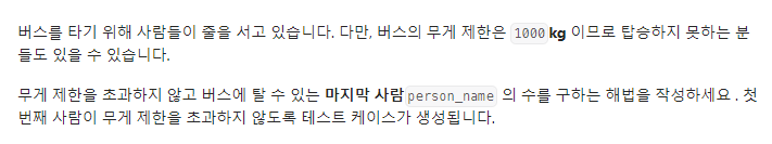 [Leetcode] 1204. Last Person to Fit in the Bus 본문